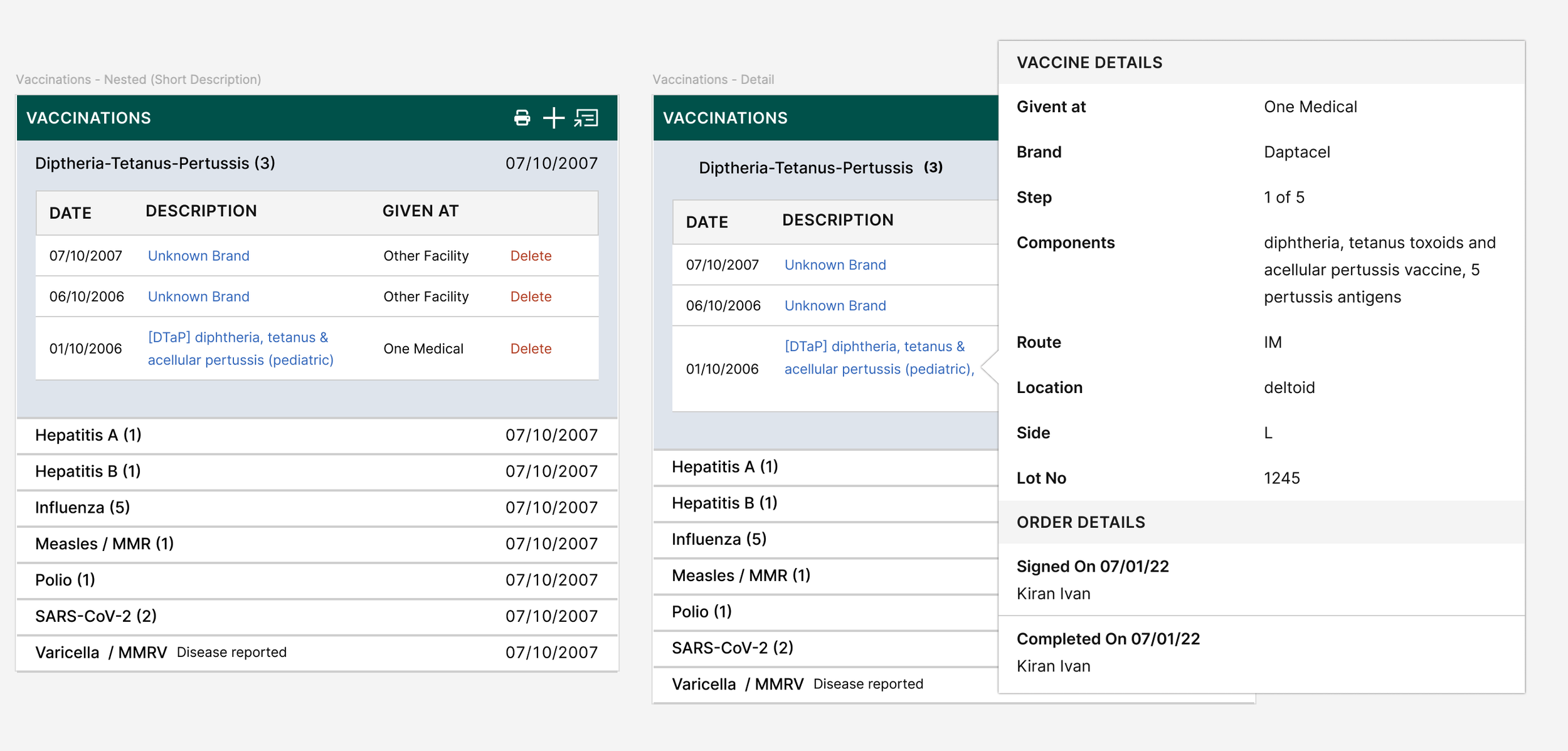 I led the redesign of the vaccine display structure to make immunization histories easier to interpret at a glance, improving provider efficiency, patient communication, and ultimately, care decisions.